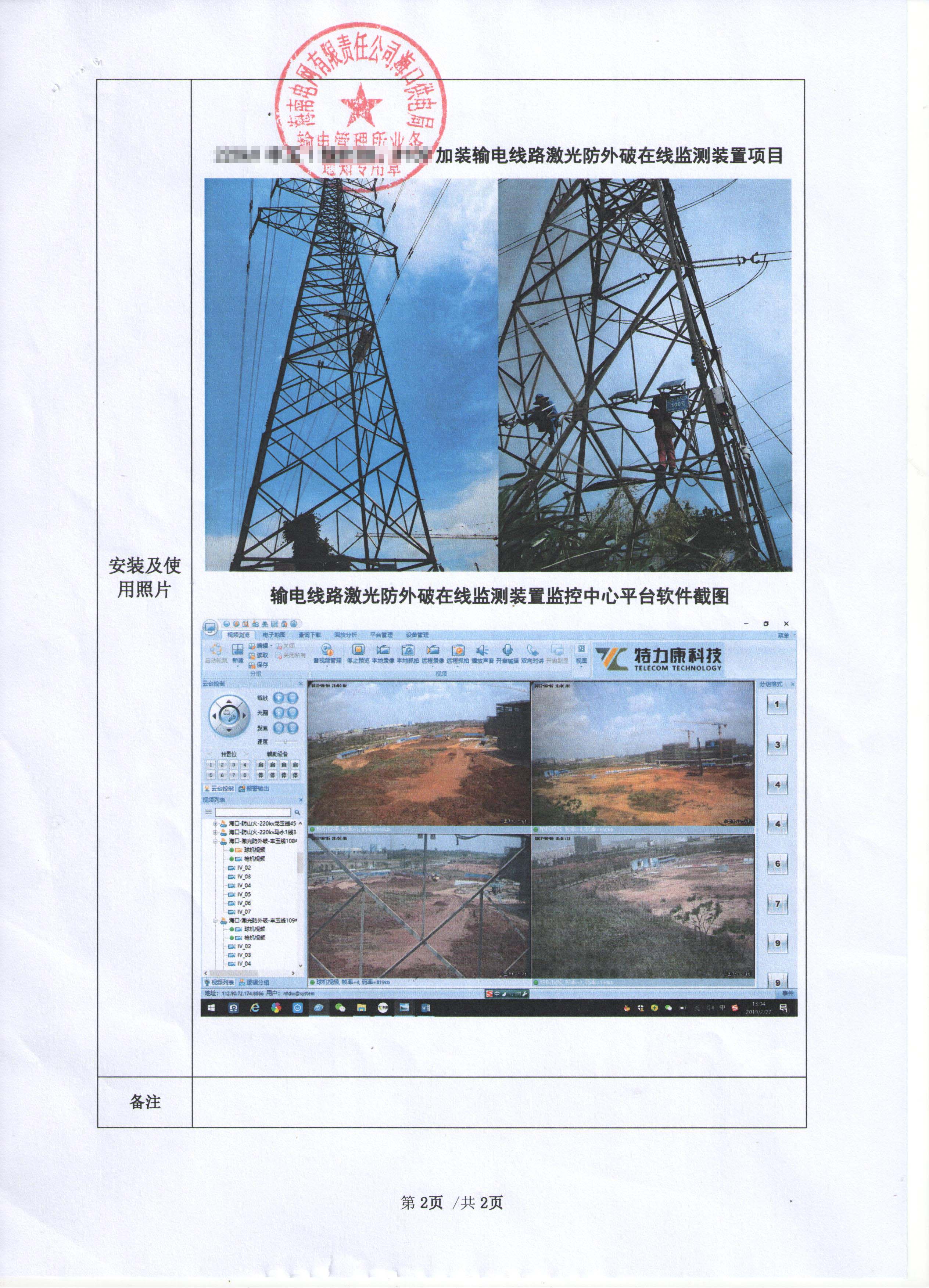 2018年1月26日海口供電單位在轄區管理線路安裝我司(深圳市特力康科技有限公司)輸電線路防外破裝置,該裝置應局方要求加裝了微氣象監測裝置及防山火裝置,監測塔桿線路走廊以及周邊森林區域山火情況。