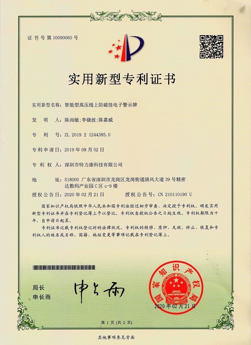 - 輸電線路激光防外力破壞裝置專利認證