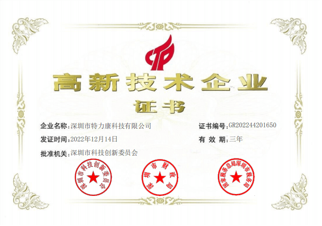 - 國家高新企業證書